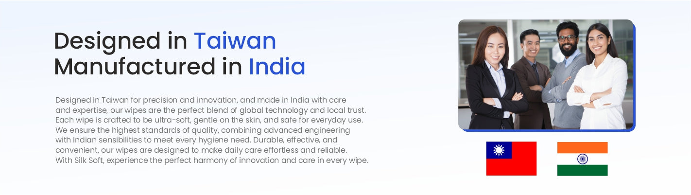 Silk Soft brings a legacy of global hygiene expertise to Indian households. Designed and engineered in Taiwan using advanced Japanese technology and manufactured in India in state-of-the-art cleanrooms, our wipes deliver unmatched quality and safety with zero human contact. With over 1 billion packs sold across Southeast Asia and a production capacity of 4 million packs per month, we are redefining hygiene solutions for babies, adults, pets, and homes. Silk Soft is your everyday hygiene companion—trusted, innovative, and crafted for every household.
